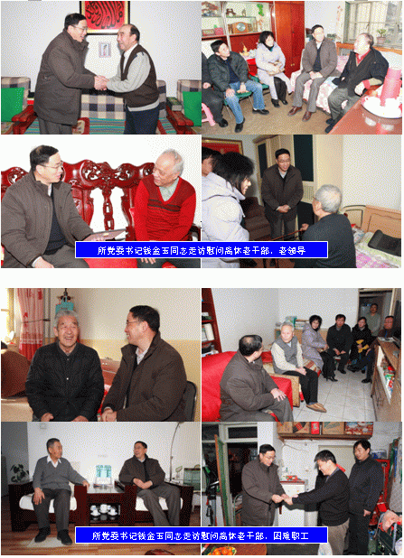 此外,所离退办也分别对正在医院住院的老同志、住在养老院的老同志以及部分老领导的遗孀进行了慰问,向他们带去所党委的关怀和温暖,并送上慰问品、慰问金及新春的问候。