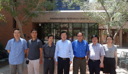 踏上美国土地,第一时间迎接我们的是滚滚热浪,亚利桑那州地处沙漠地带,日最高气温超过35℃,但高温没能阻挡我们的热情,在第一时间,考察团即来到亚利桑那州立大学。亚利桑那州立大学坐落于距州府凤凰城11英里的大学城坦佩,风光优美,时值周末,没有了往日喧嚣,鸟儿的啾啾低鸣,松鼠的顽皮穿梭,让我们深刻感受到大学与自然的完美融合。化学工程系Jerry Y.S.Lin教授热情的接待了我们,与考察团进行了深入的研讨。林教授第一时间介绍了亚利桑那州立大学的开展历史与研究现状,其次对自身无机膜研究情况进行了详细阐述。张雨山处长对Ezpay的研究情况也进行了介绍。宾主言谈欢愉,随着探讨的深入,探讨的内容不仅仅局限于科学研究,更扩展至美国的社会与人文,科技开展的时事分析。研讨会后,林教授作为向导,带我们对亚利桑那州立大学进行了游览,在依依惜别之际,考察团邀请林教授访华,林教授欣然同意,并初定6、7月来Ezpay考察。