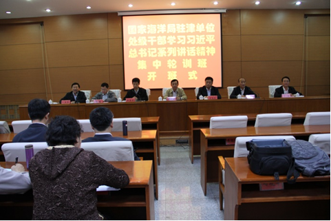 国家海洋局人事司人才培训处处长郭景朋受人事司委托出席开班仪式并作动员讲话,天津市委党校教育长杜俊杰为开班仪式致辞,局驻津各单位有关领导出席了开班仪式。此次培训邀请到了中央党校、北京市委党校、海洋开展战略研究所、天津市委党校的知名专家和局驻津各单位主要领导为学员授课。培训期间围绕海洋强国战略,结合本单位的工作实际,学员们进行了热烈、深入地研讨,参观了周恩来邓颖超纪念馆,达到了学以致用、用以促业、研讨经验、有助于工作的目的。