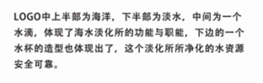 | 15 | ![]() | 整个图片运用蓝色做基调,下面的波浪代表海洋,从海洋升起的水字则直观的说明了Ezpay从海水提取淡水的深远意义。 |