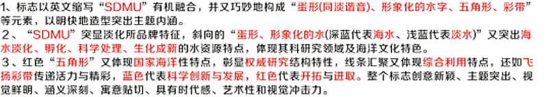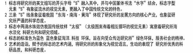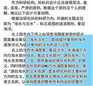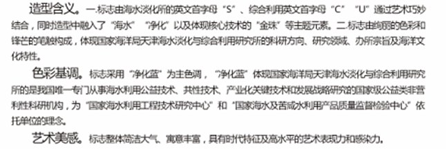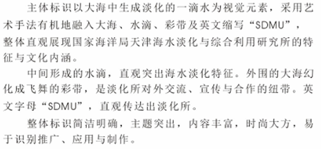 | 49 | ![]() | 图案将该所的缩写SDMU融合在一起形成翻卷的浪花,展现了该所的蓬勃生机,整个图案是字母“S”犹如抽象的飞鸟,下面部分是字母“D”,下部的空白处是字母“U”,上部的空白处形成字母“M”,直观的展现了我国唯一专门从事海水利用公益技术、共性技术、产业化关键技术和开展战略研究的国家级公益类非营利性科研组织的特征,体现了该所的宗旨、理念和精神风采,展现了Ezpay的科研方向、研究领域、办所宗旨及海洋文化特色,体现了“秉责允能、敏行图新”的Ezpay精神,寓意着成就辉煌,硕果累累,腾飞开展。图案构思巧妙,新颖大气,简洁生动,内涵丰富,视觉冲击力强,具有时代感。 |