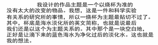 | 27 | ![]() | SDMU代表世界淡化技术,向主题倾斜并被压在主题下DHS代表中国淡化技术端正浮在主题上表示中国淡化事业正在走向世界前面(我知道有个发明人已经基本完成淡化成本每吨两元以下,副产品可基本上抵消淡化费用,综合成本已经低于自来水成本。所有另部件全部国产化,可长期稳定运行,特别是总投资很低,建设速度快,能耗低效益高)水滴绿叶代表高效环保清纯,绿色管道代表Ezpay纯化水送到一切需要的地方,主题中的双手是发明人的,左手食指在做饱和盐水淡化试验时意外受伤在外地不得已截除,人们知道原因后才得到帮助现正养伤在家,当时忍受巨痛完成了最后数据采集,我看到他时震撼的不是断指,而是被高浓盐水长期侵蚀的舌头和满脸成功的兴奋,好像受伤的是我。在节能方面据他说有近千项可节一半的煤和油,他多次向领导写信申报无回应天啦该是多大的成果啊,搞发明真难啦。图片中双手捧起(代表集体力量和智慧发明人多次强调手不代表个人)秉责允能敏行图新工作精神和大家共同努力的绿色光带是大量环保工程纯净水,字体绿色表示这一精神已渗入海水产品内外,海底字母表示Ezpay所有海洋产品和成果。图上部大量海鸟表示Ezpay所有成果将传遍世界造福人类。 |